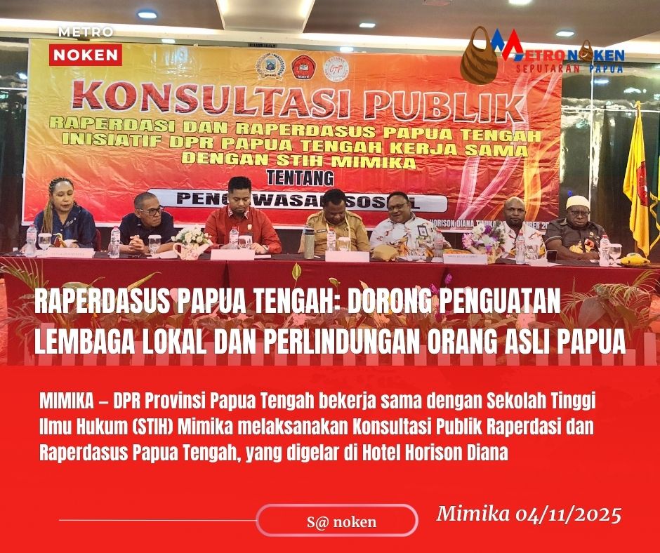 Mimika, metronoken.id- DPR Provinsi Papua Tengah bekerja sama dengan Sekolah Tinggi Ilmu Hukum (STIH) Mimika melaksanakan Konsultasi Publik Raperdasi dan Raperdasus Papua Tengah, yang digelar di Hotel Horison Diana Timika, Selasa (04/11/2025).