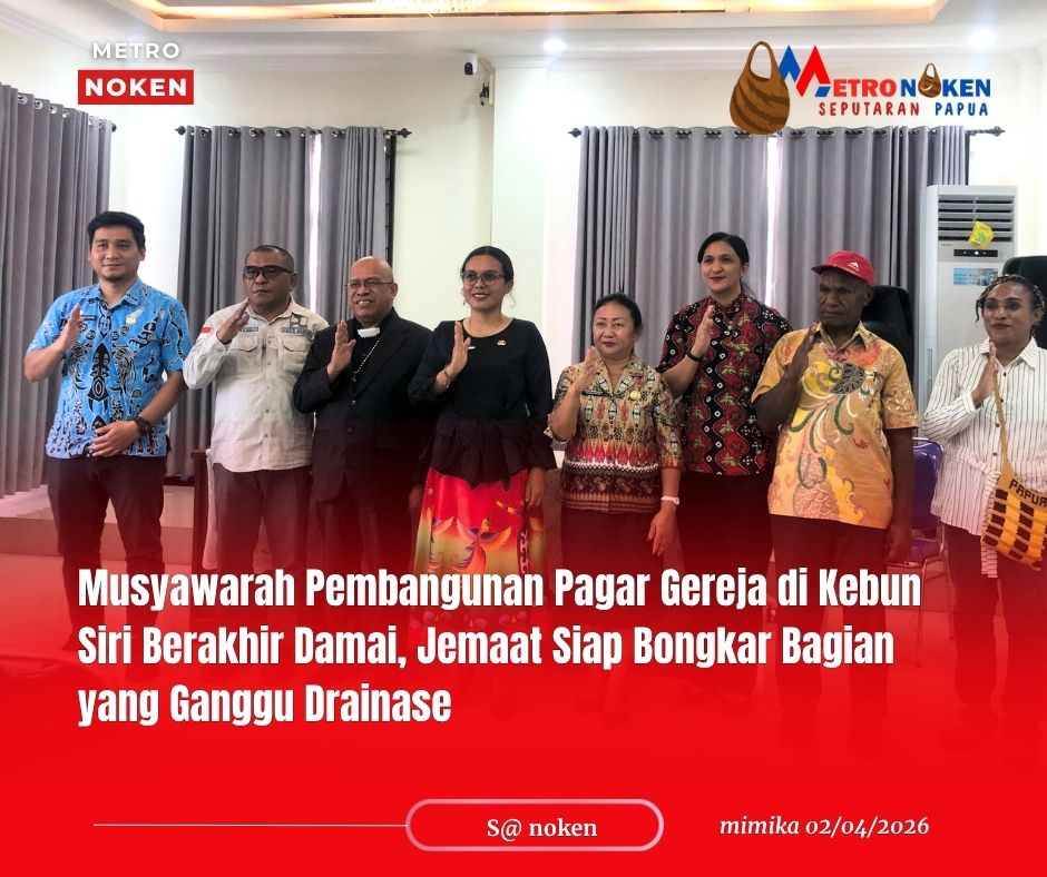 Mimika, metronoken.id – kamis (02/04/2026) Pemerintah Distrik Mimika Baru bersama pihak kelurahan, tokoh gereja, serta masyarakat menggelar pertemuan untuk membahas polemik pembangunan pagar gereja di wilayah Kebun Siri yang dinilai mengganggu jalur drainase (parit).