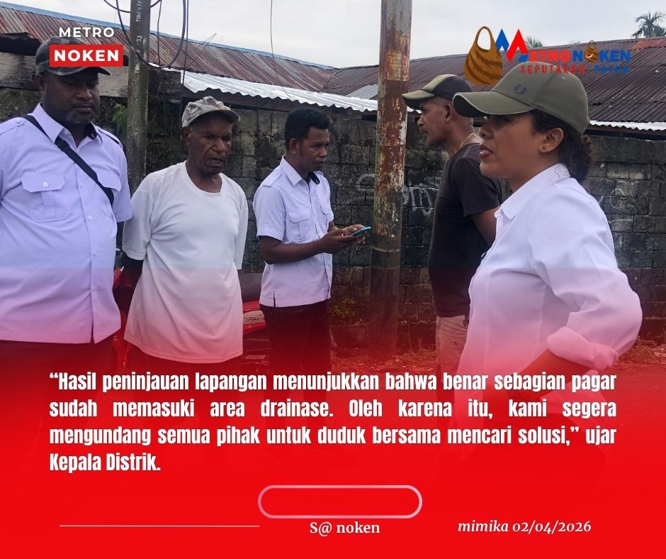 “Hasil peninjauan lapangan menunjukkan bahwa benar sebagian pagar sudah memasuki area drainase. Oleh karena itu, kami segera mengundang semua pihak untuk duduk bersama mencari solusi,” ujar Kepala Distrik.