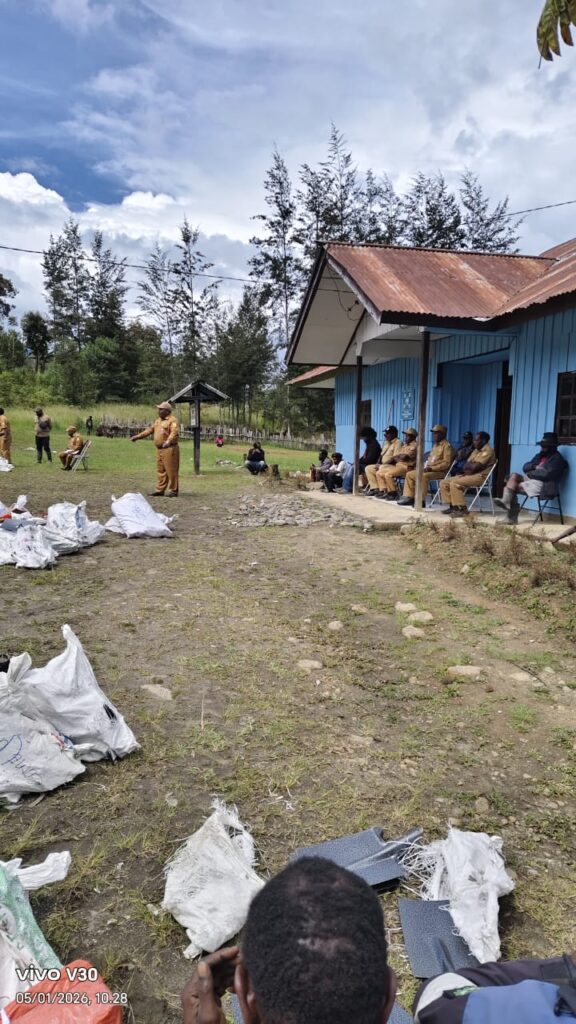 Ilaga, metronoken.id – Pemerintah Kabupaten Puncak, Distrik Gome mengawali tahun 2026 dengan membagikan berbagai alat kerja kebun kepada masyarakat. Kegiatan pembagian alat kerja berupa sikop, parang, kapak, dan perlengkapan kerja lainnya ini dilaksanakan di halaman Kantor Distrik Gome, Kabupaten Puncak, Senin (5/1/2026).