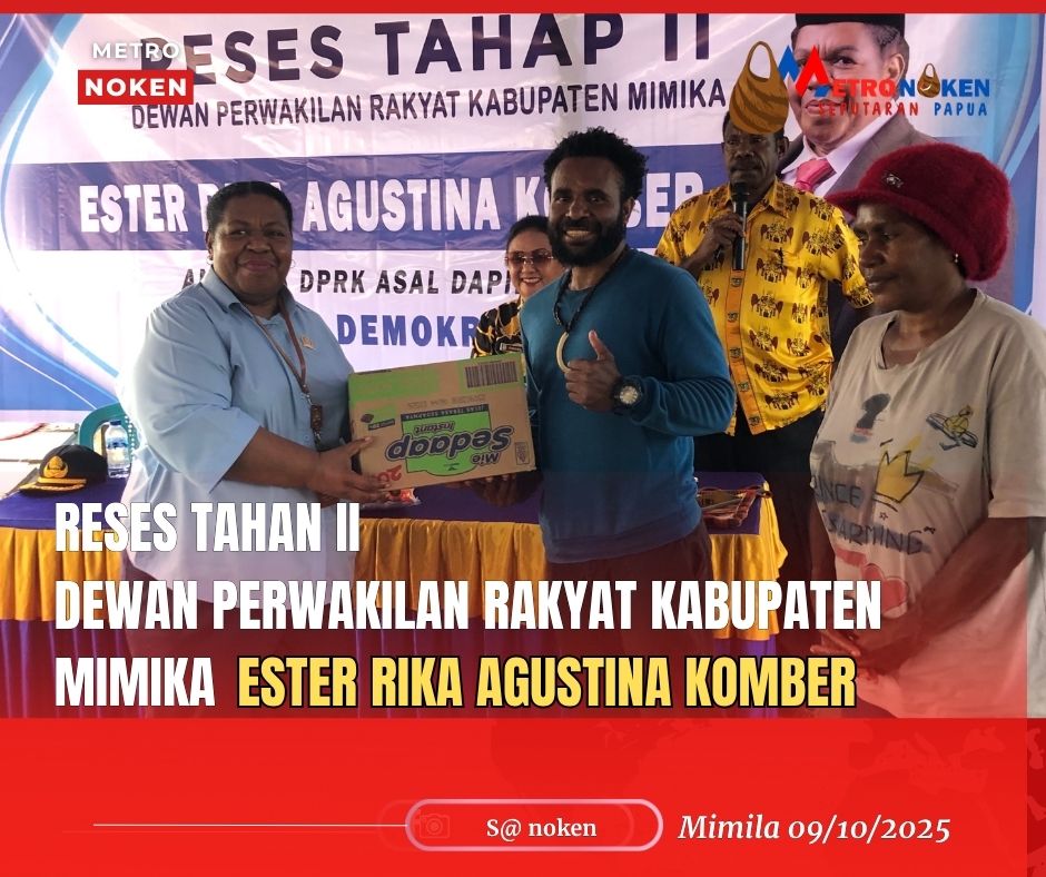Timika, metronoken.id 9 Oktober 2025 — Anggota Dewan Perwakilan Rakyat Daerah (DPRD) Kabupaten Mimika, Ester Rika Agustina Komber, melaksanakan kegiatan Reses Tahap II di Kampung Kebun Siring, Distrik Mimika Baru. Kegiatan ini dihadiri oleh para tokoh masyarakat, tokoh gereja, pemuda, serta mama-mama dan bapak-bapak warga setempat.