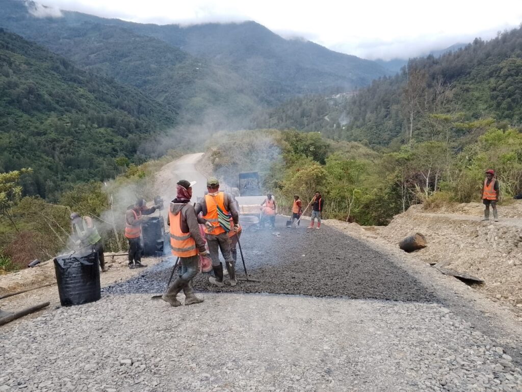 Tampak Kontraktor membangun pengaspalan sugapa – hitadipa.